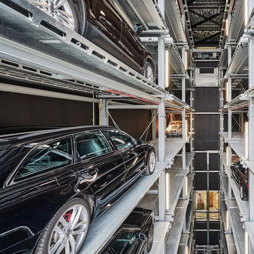 Vollautomatische Parksysteme – die Fahrzeuge platzsparend, effizient und nachhaltig unterbringen, ohne wertvollen Stadtraum zu verschwenden.