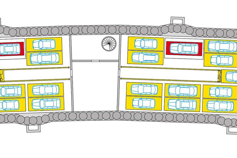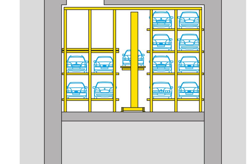 Wenn „Parkideen“ in den Himmel wachsen, ist sehr wahrscheinlich eines dieser automatisch gesteuerten Parksysteme im Spiel. Nach dem Prinzip eines Regals werden die Fahrzeuge rechts und links in Fächer geparkt. So entsteht ein Turm, ein Schacht oder eine Turm/Schacht-Kombination – ganz nach den individuellen Projektanforderungen. In den Parksafe Modellen von WÖHR ist ein zentraler Lift eingebaut, der die Autos vollautomatisch in ein freies Regalfach transportiert und dort sicher vor Diebstahl und Vandalismus einlagert.
