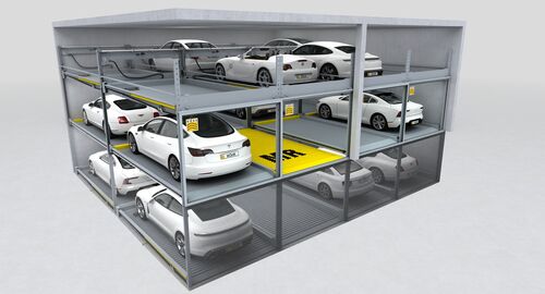 Nachhaltige Parkraumverdichtung für ein Sanierungsprojekt der Superlative: Im Zentrum Madrids trägt ein vollautomatischer WÖHR Multiparker 740 zum reduzierten ökologischen Fussabdruck des Gebäudes Montalbán 11 bei.