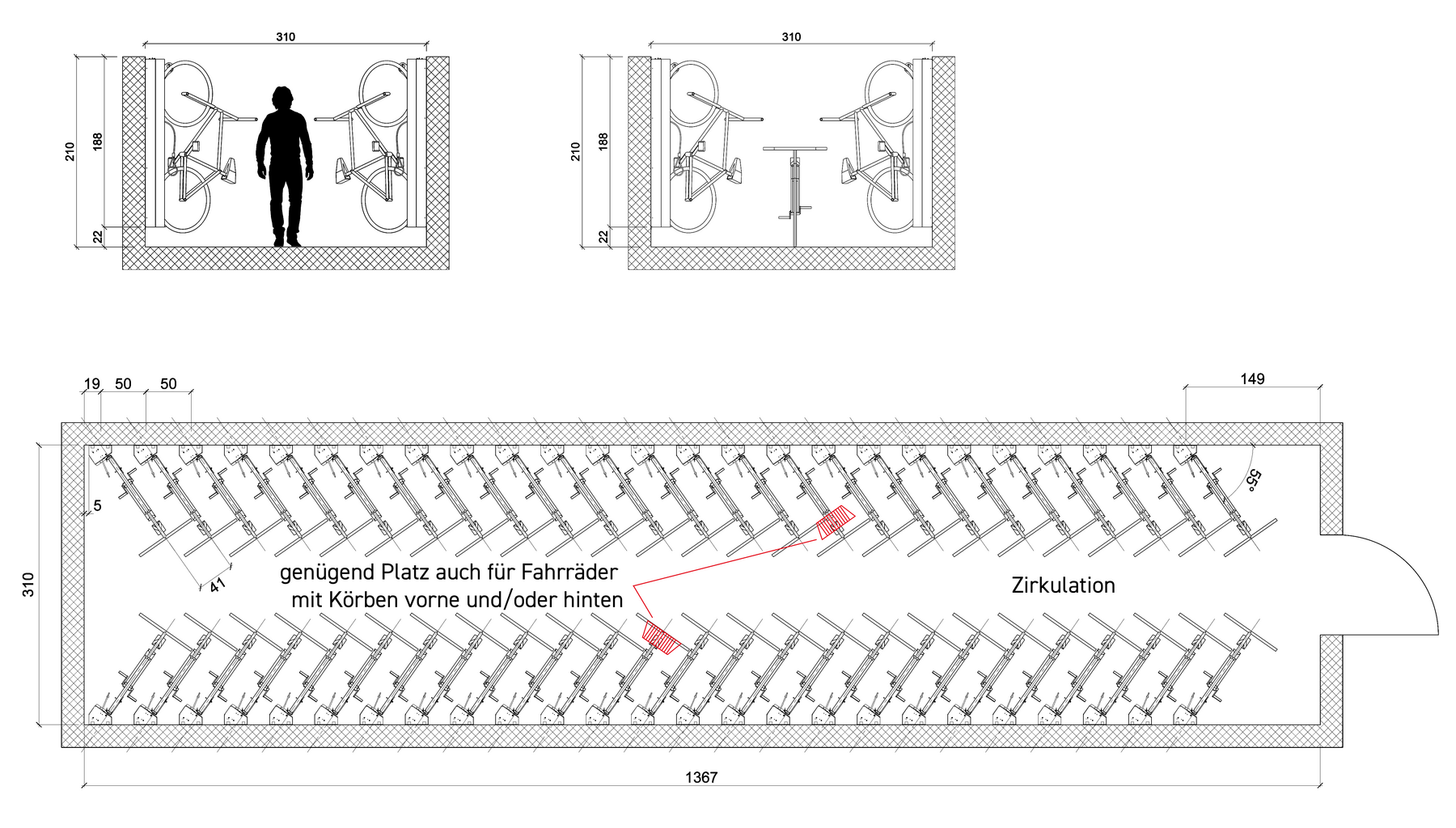- Sorgt für stetige Parkingordnung durch optimale Raumplanung und Anordnung der Fahrradlifter