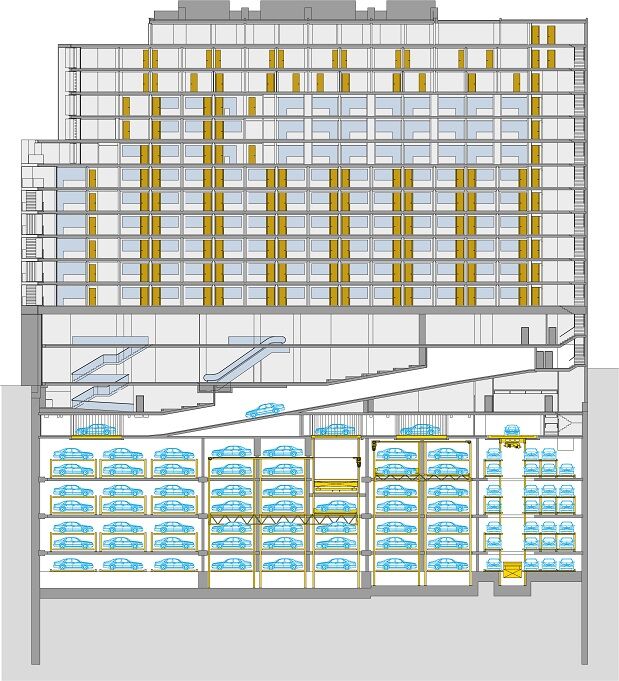 - 8 unterirdische Parkebenen