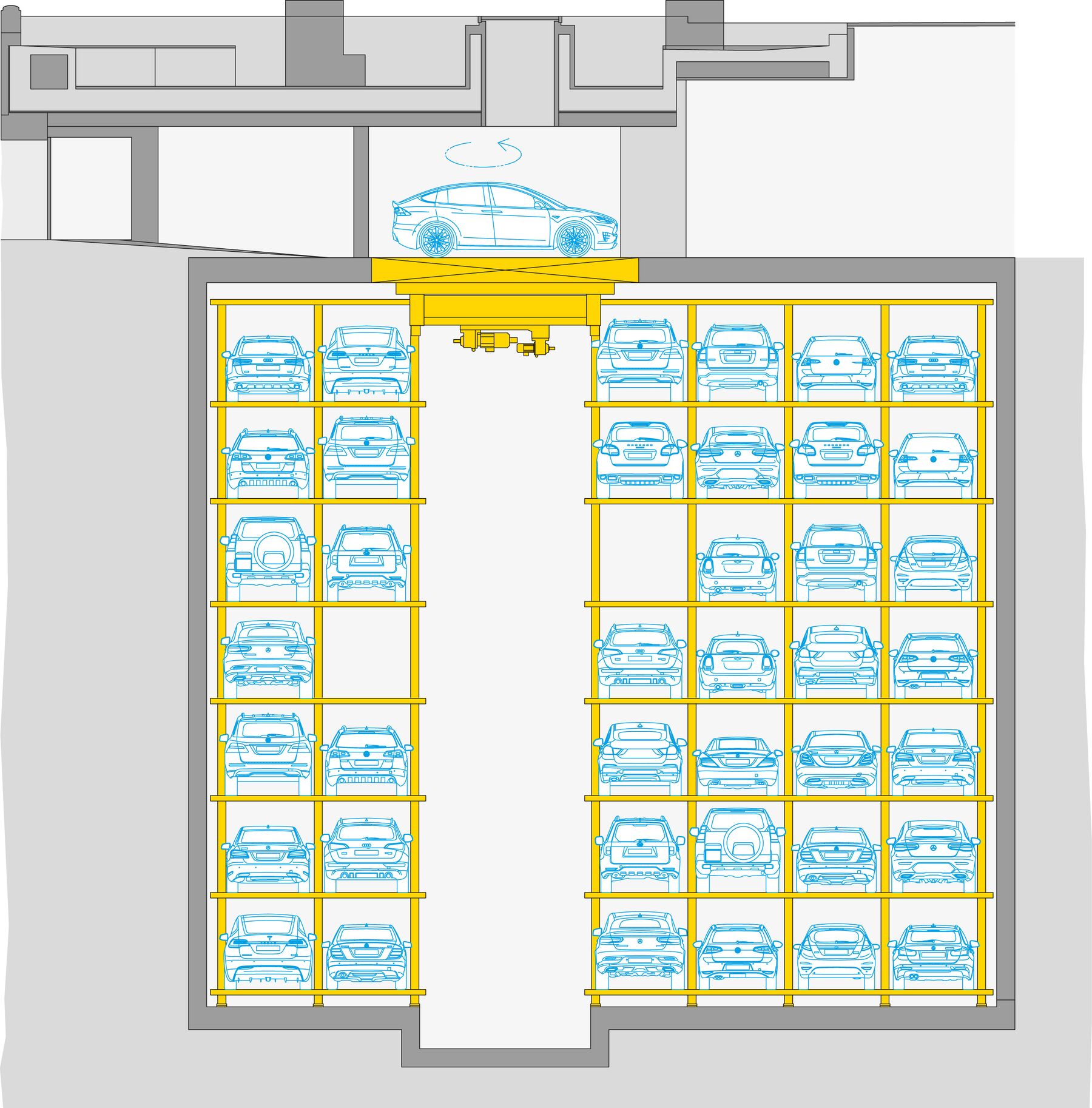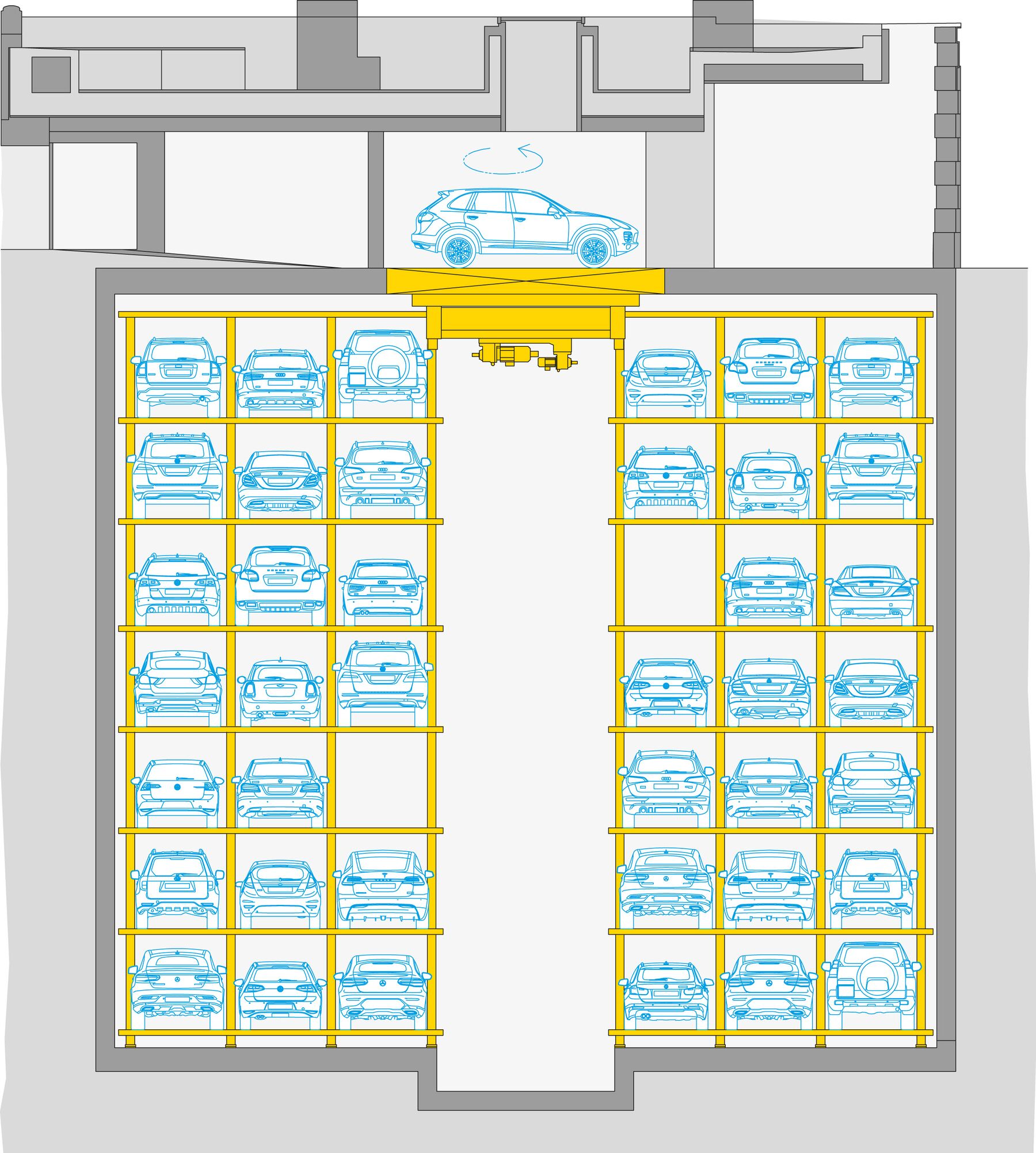 - 7 unterirdische Parkebenen