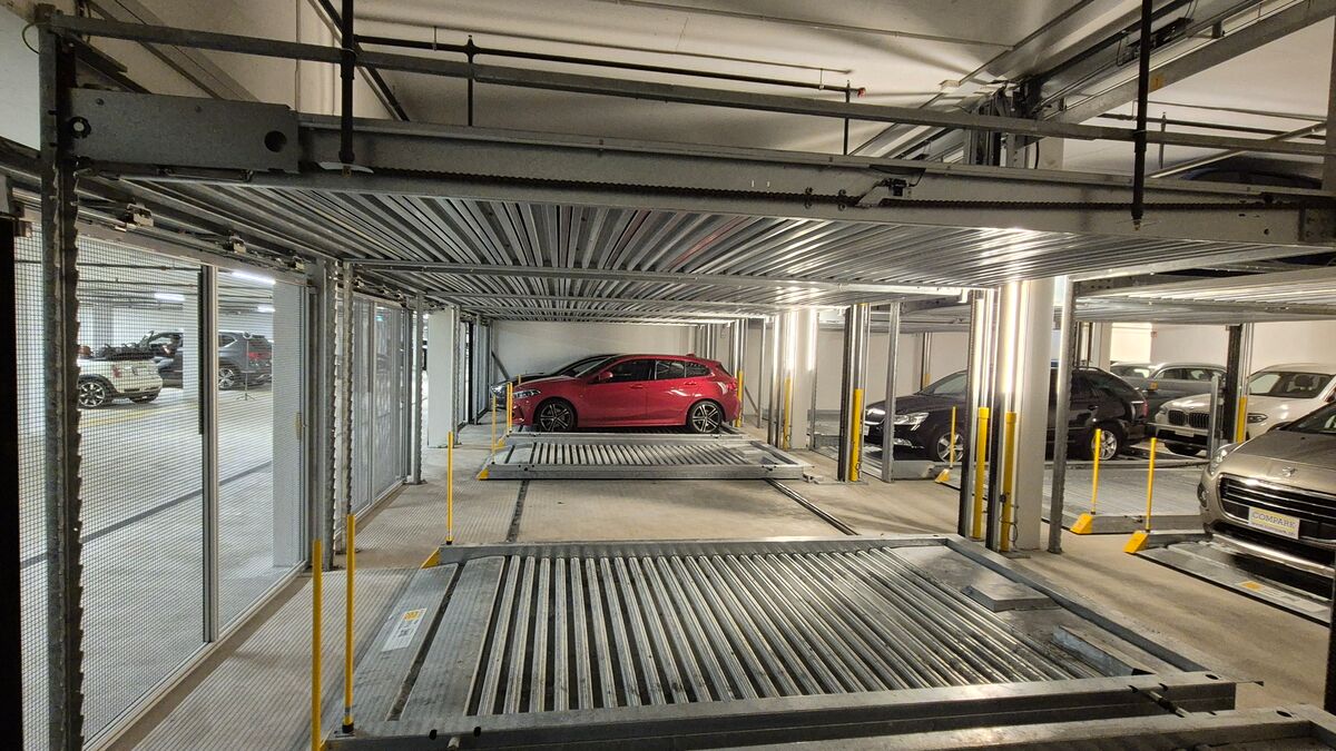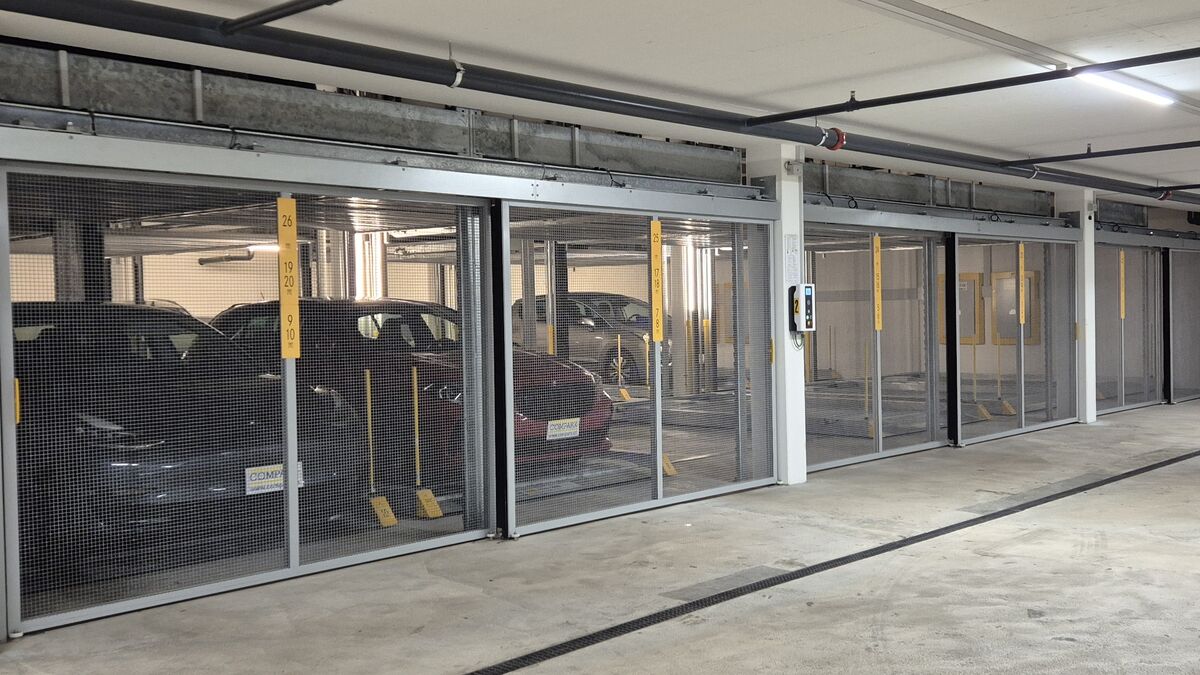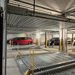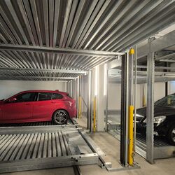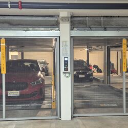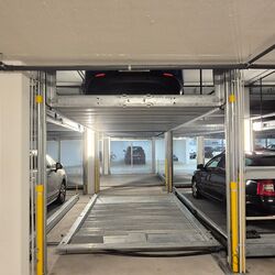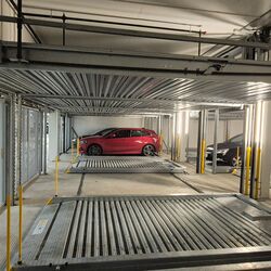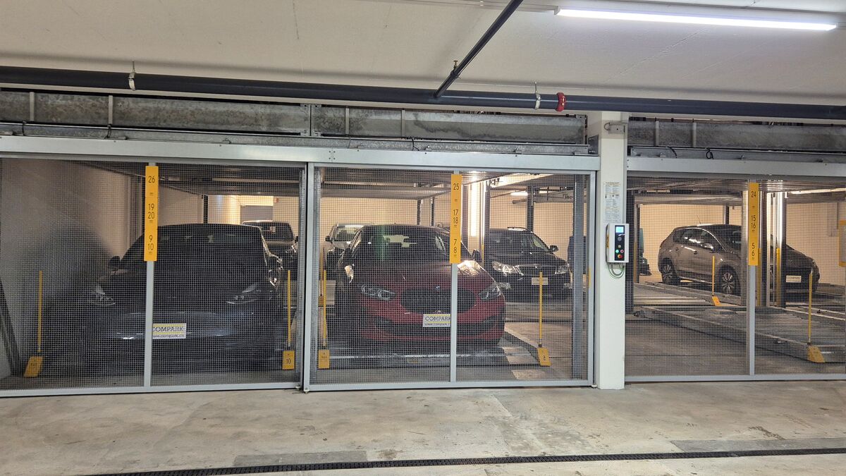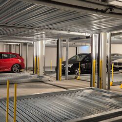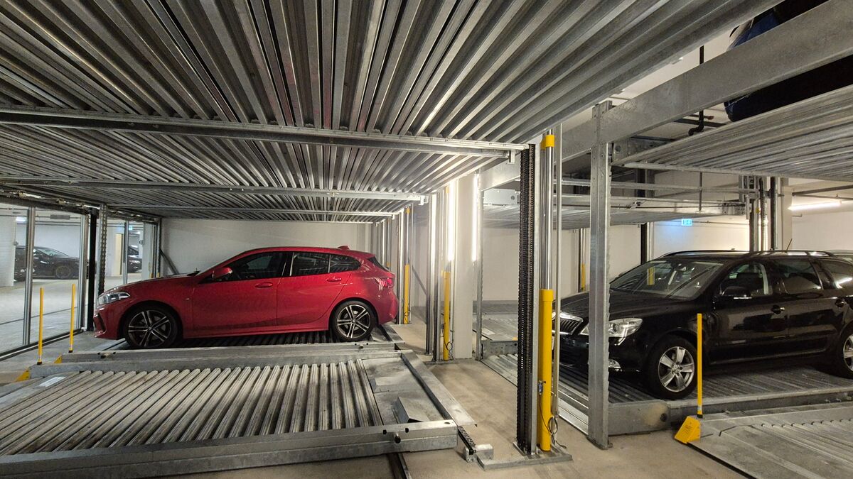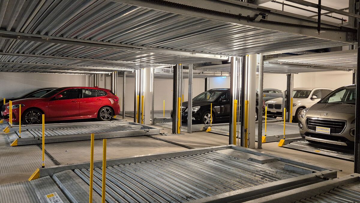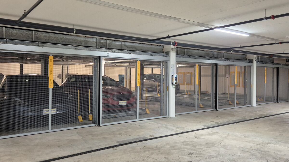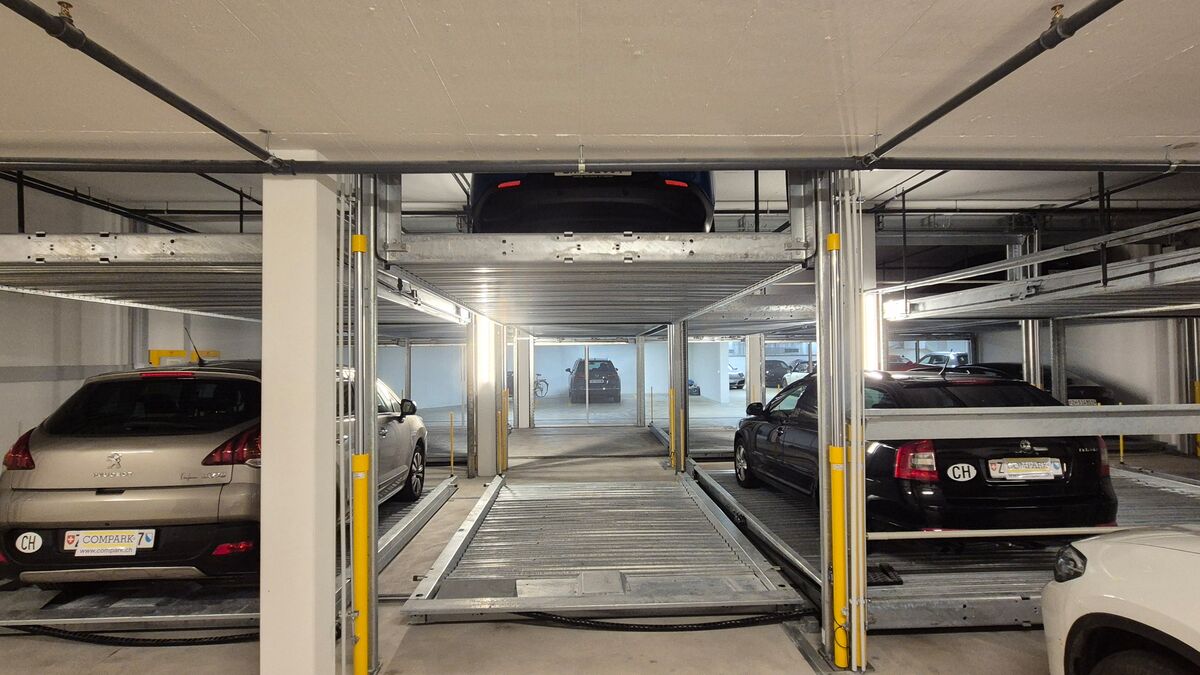 Verdichtetes Bauen hat viele Vorteile, doch eine optimale Flächennutzung und höhere Bauweise führen oft dazu, dass Parkflächen knapp werden. Unsere halbautomatischen Anlagen schaffen in einer Garage in Zürich-Oerlikon trotz der beengten Platzverhältnisse die erforderlichen Parkplätze. Es wurden 4 Anlagengruppen mit insgesamt 6 Stk. Combilift 552, 2 Stk. Combilift 551 und 4 Stk. Parkplatten 501 montiert. Dadurch konnten insgesamt 64 Stellplätze geschaffen werden.