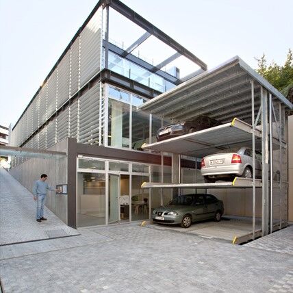 Durch eine spezielle Technik lassen sich im Combiparker 560 jedoch Autos auf bis zu 5 Ebenen parken – mit nur einer Einparkebene.