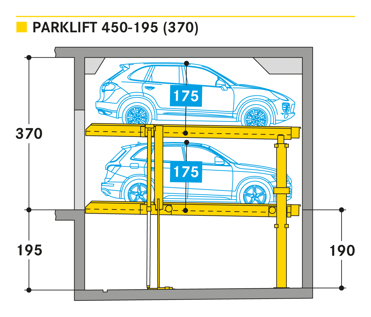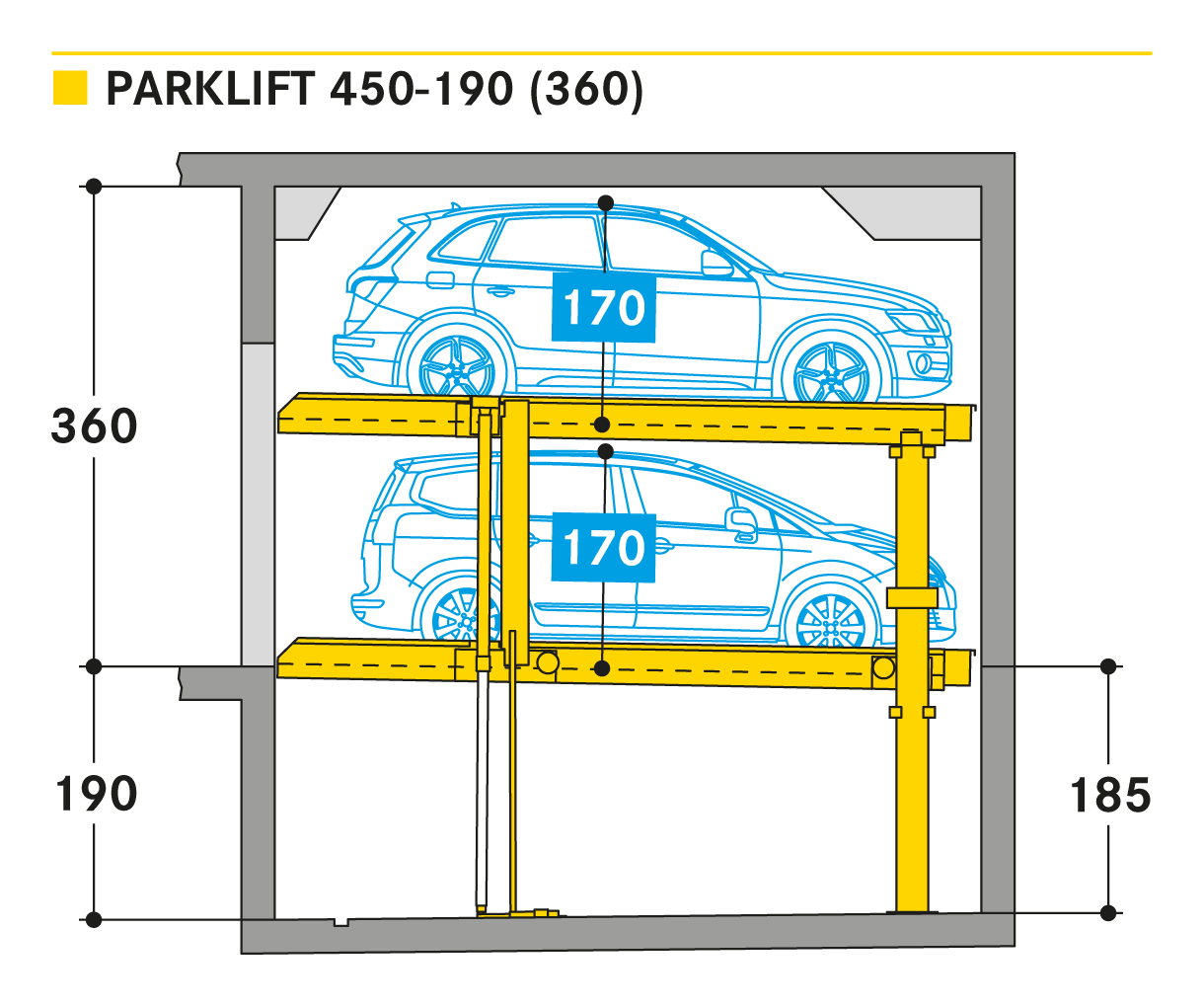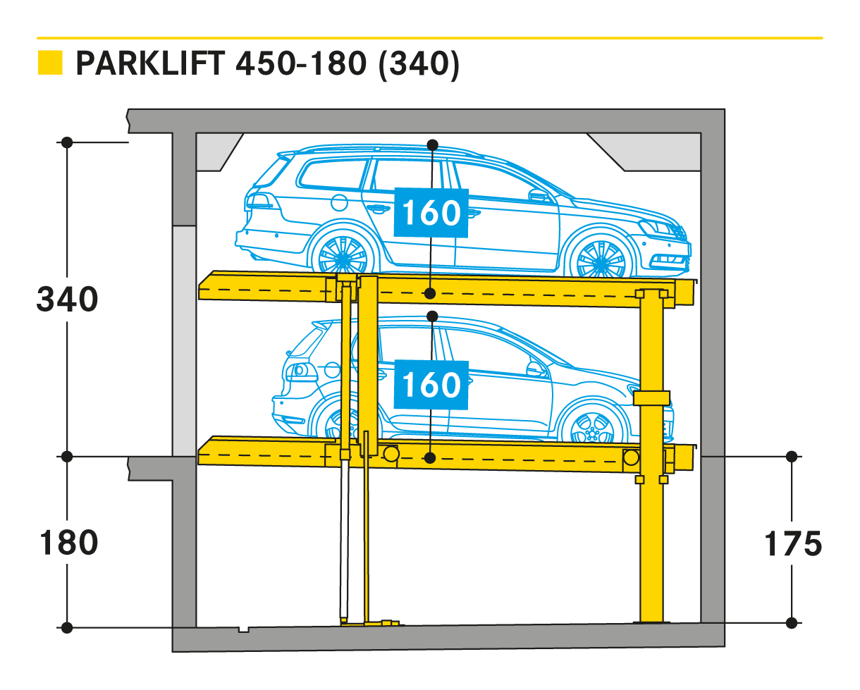 Le Parklift 450 prend la relève de son prédécesseur le Parklift 440. Les avantages de ce nouveau développement sont des cotes de montage réduites alors que les dimensions des véhicules demeurent inchangées.