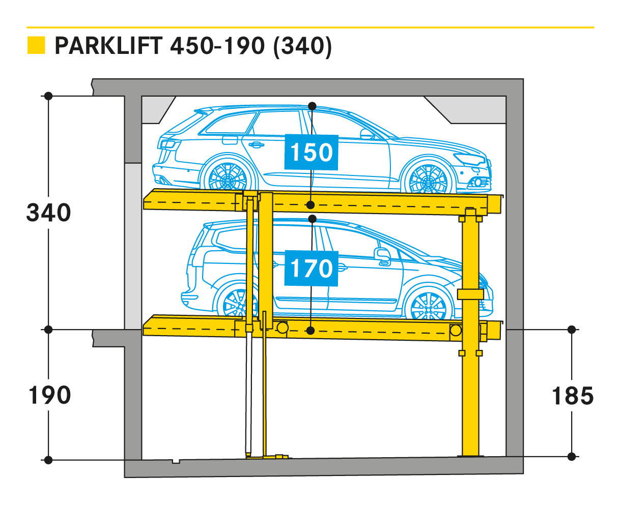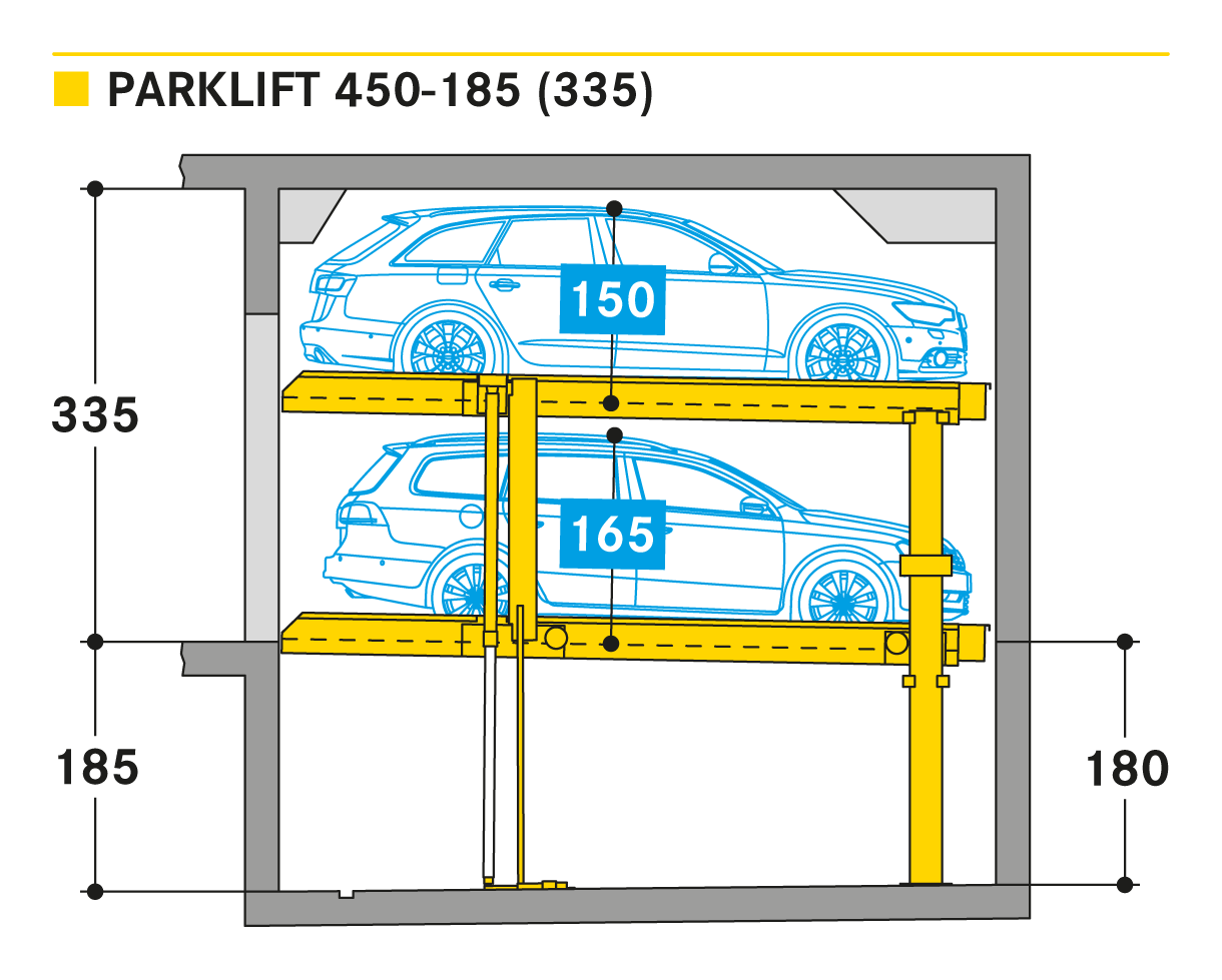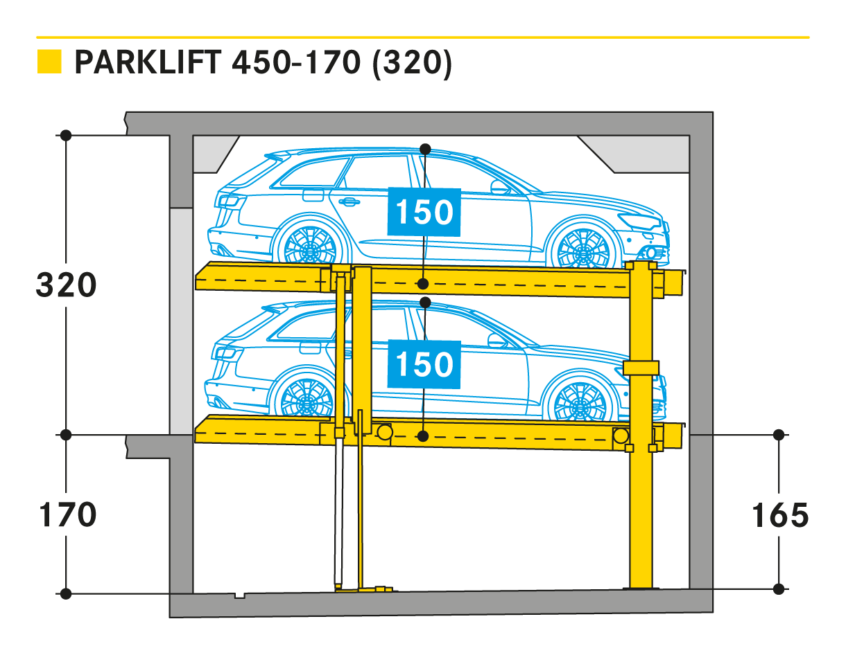 Le Parklift 450 prend la relève de son prédécesseur le Parklift 440. Les avantages de ce nouveau développement sont des cotes de montage réduites alors que les dimensions des véhicules demeurent inchangées.