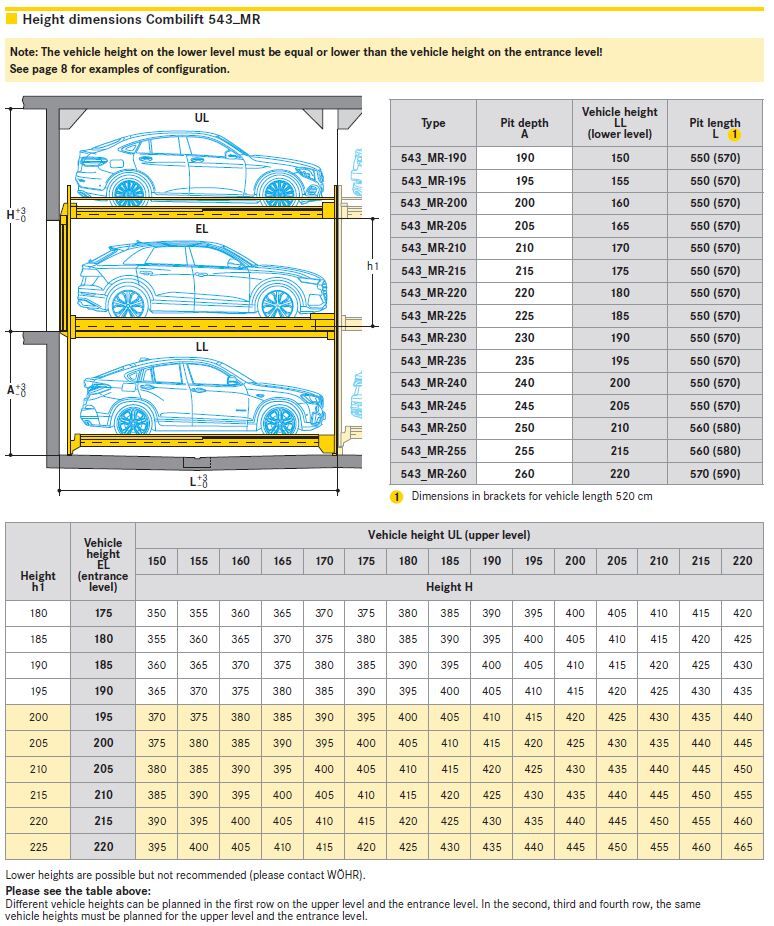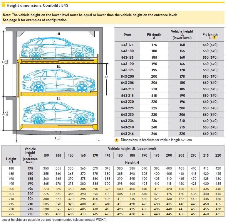 Tutti i nuovi Combilift sono estremamente flessibili, in quanto possiamo creare una nuova altezza ogni 5 cm per parcheggiare veicoli di altezza compresa tra 150 cm e 220 cm.