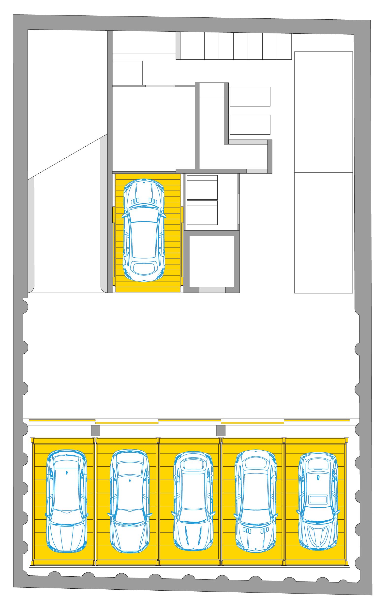 Nel progetto Themeda, un Combiparker a 3 livelli ha permesso di realizzare 13 posti auto nello spazio di 5 posti auto tradizionali: un enorme risparmio in termini di spazio e di costi!