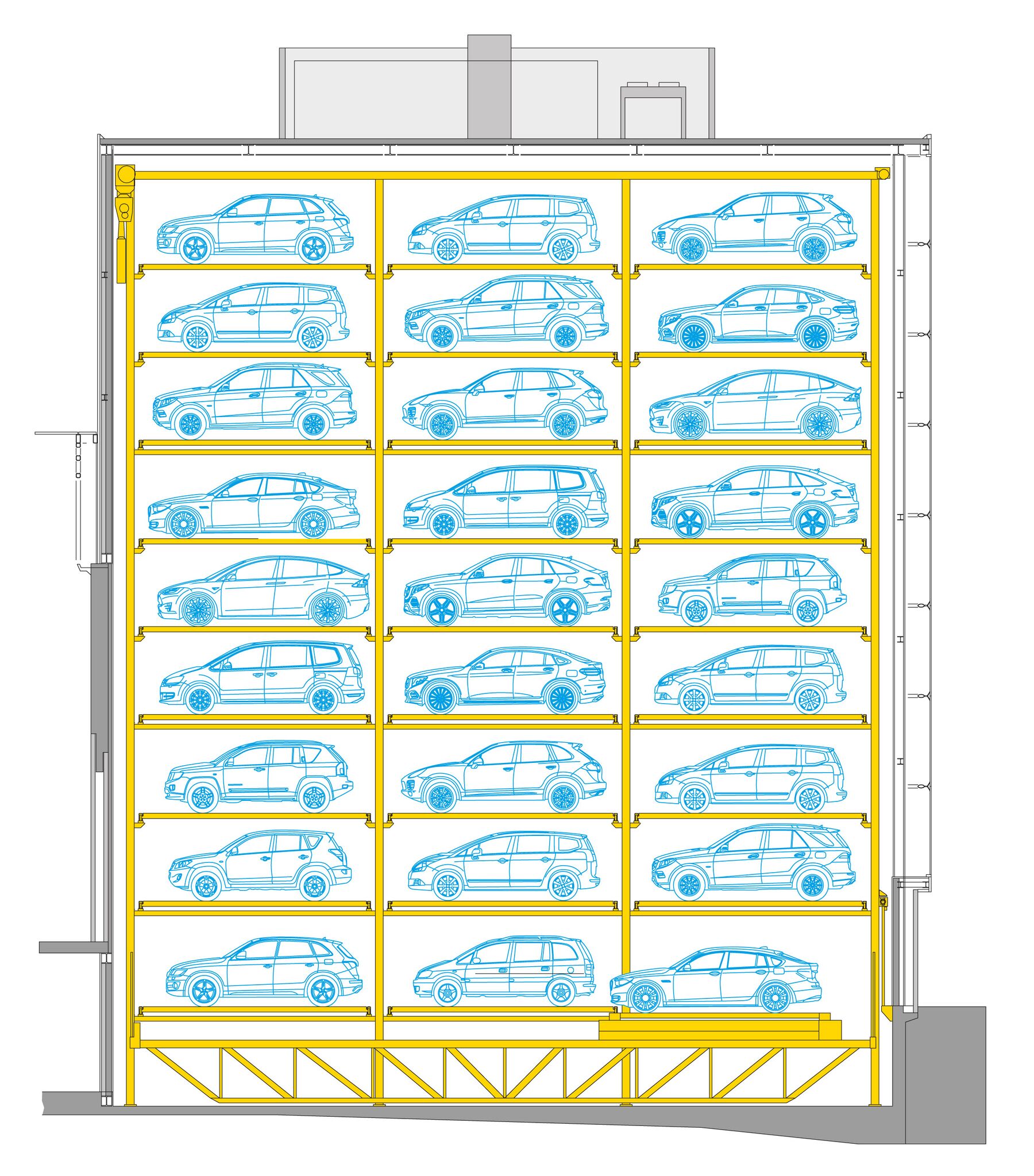 - 9 livelli di parcheggio fuori terra