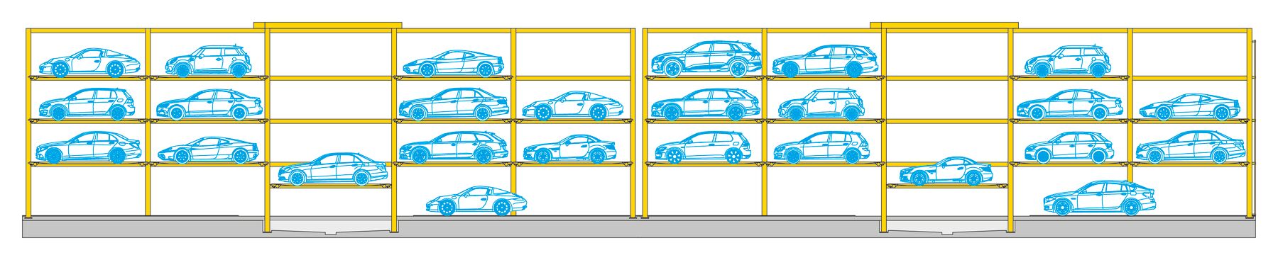22 auto da sogno sono posizionate nei due Slimparker 557 in un parcheggio molto speciale. I veicoli sono sorapposti su tre livelli nel sistema di parcheggio completamente automatizzato sulla facciata del museo. Grazie alla speciale verniciatura in bianco puro, il sistema si armonizza perfettamente con l'ambiente del museo e presenta i veicoli in tutto il loro splendore.