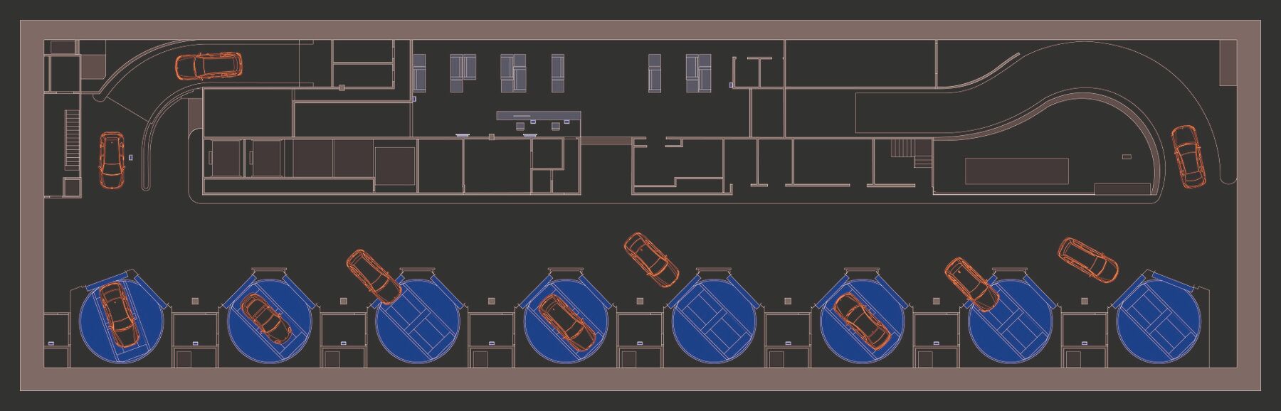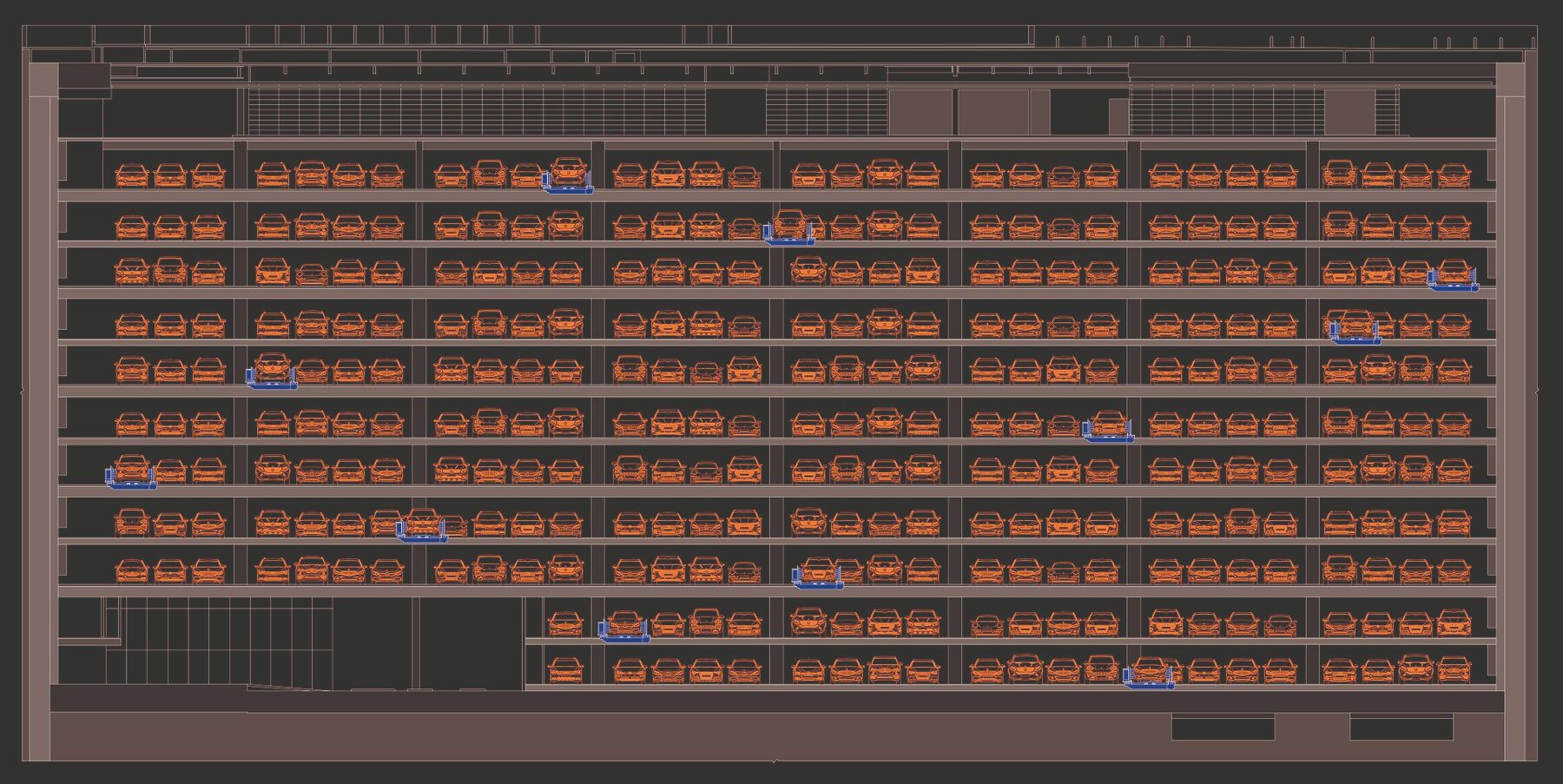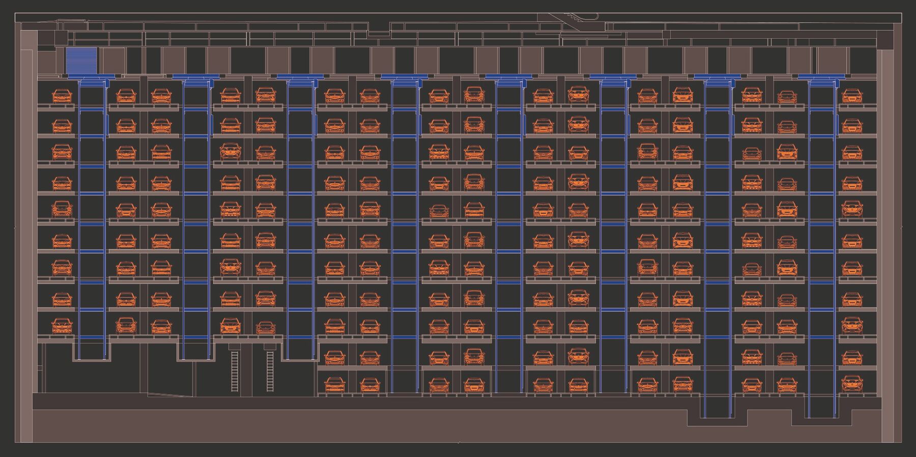 C'è spazio per circa 80 veicoli per livello. Il movimento è costante. La WÖHR ha optato per un "sistema caotico". Alla base di questo termine c'è l'approccio di non assegnare agli utenti spazi di parcheggio fissi per i loro veicoli, ma piuttosto spazi che cambiano continuamente. Questo crea una dinamica costante e un utilizzo ottimale del sistema.